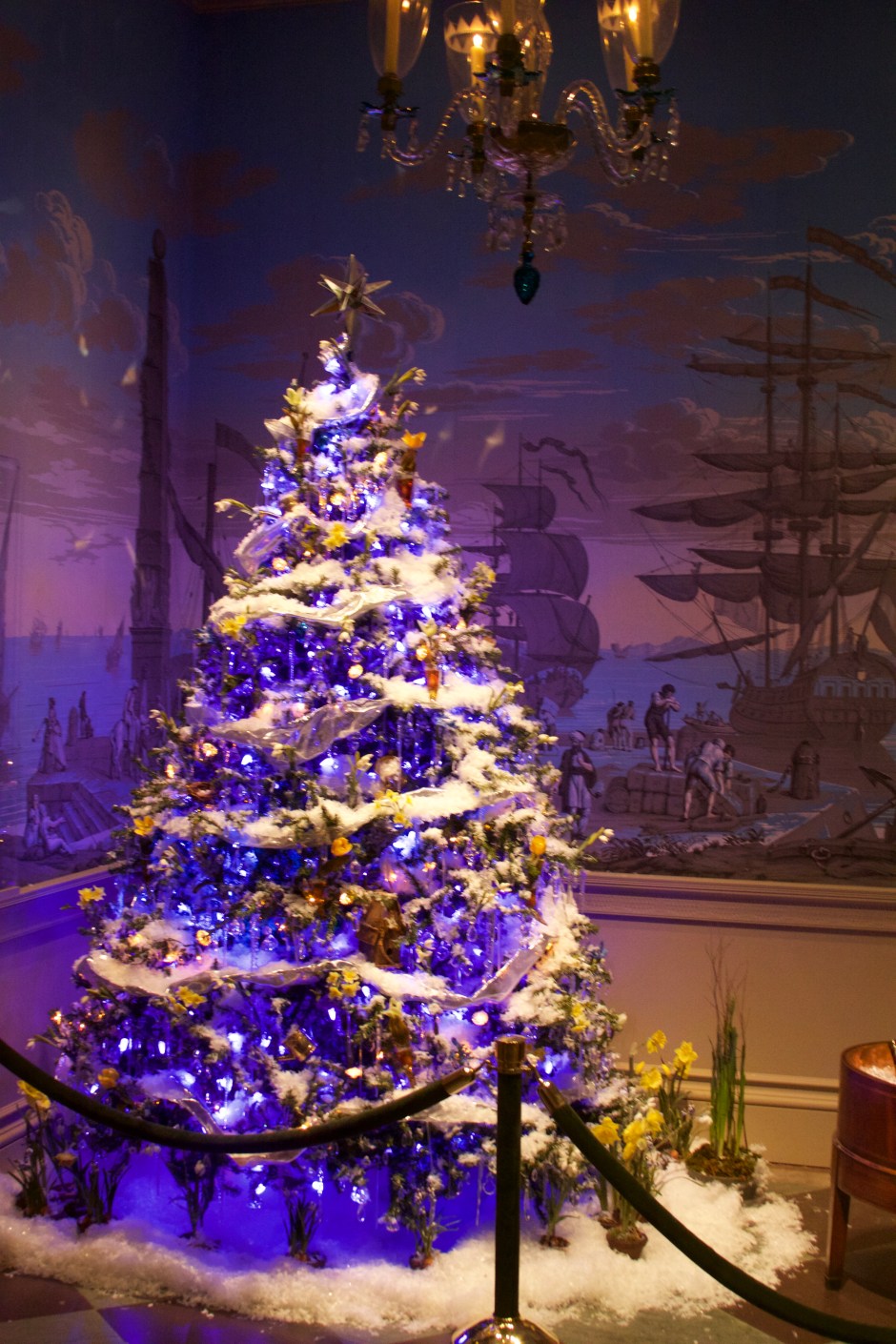 With lights, ornaments, and a star,